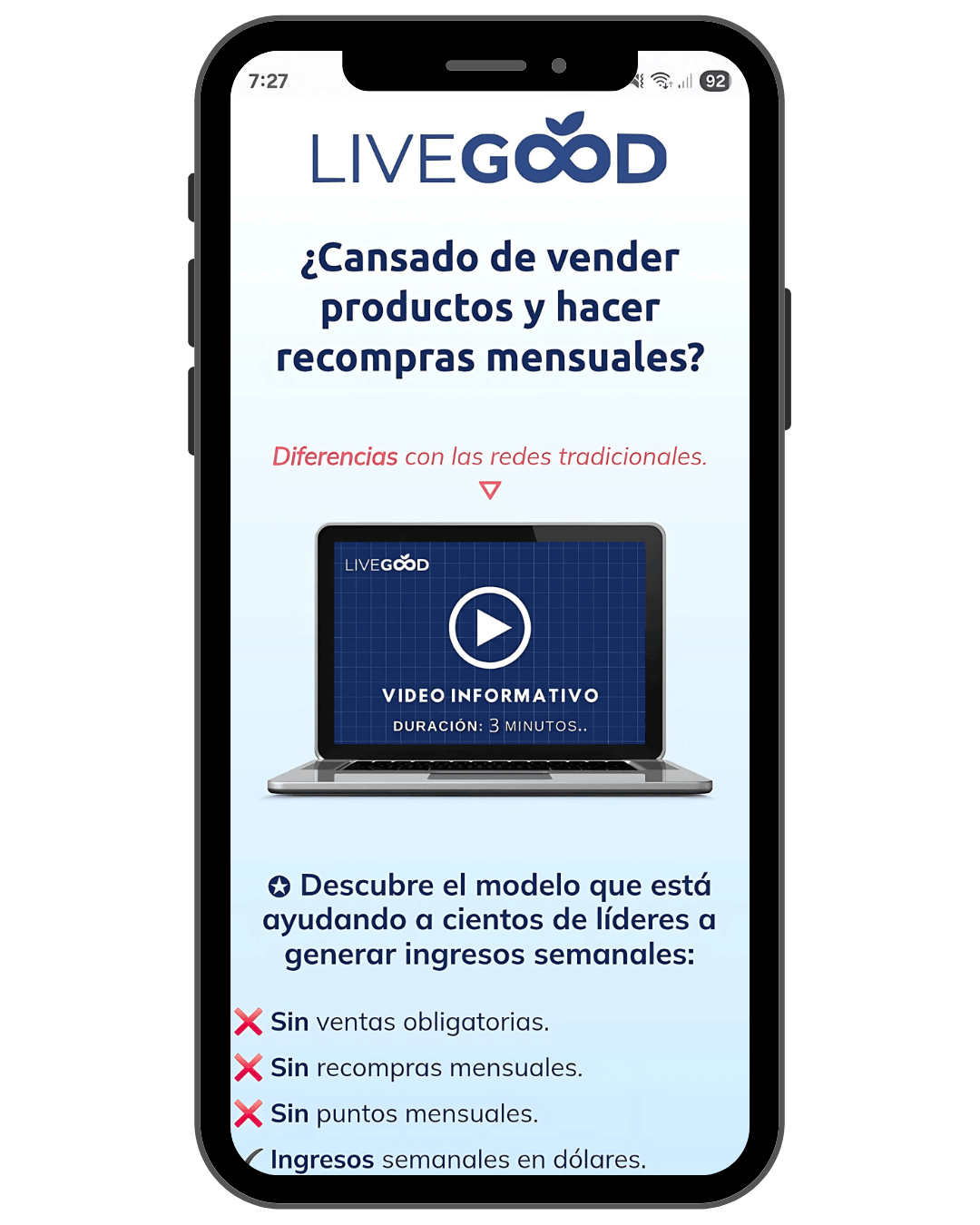 Esta metodología destaca de manera estratégica los beneficios de LiveGood, Convirtiendo visitantes en Socios o Clientes.